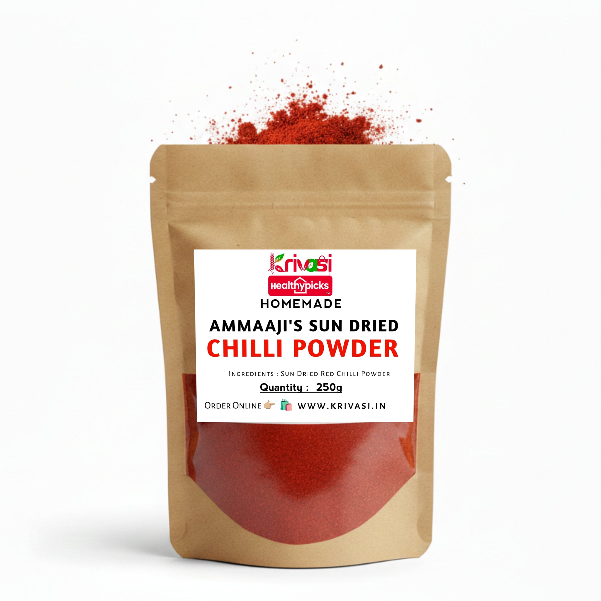 Krivasi Ammaaji’s Sun Dried Red Chilli Powder brings authentic homemade warmth, natural spice strength, and uncompromised purity to every dish.